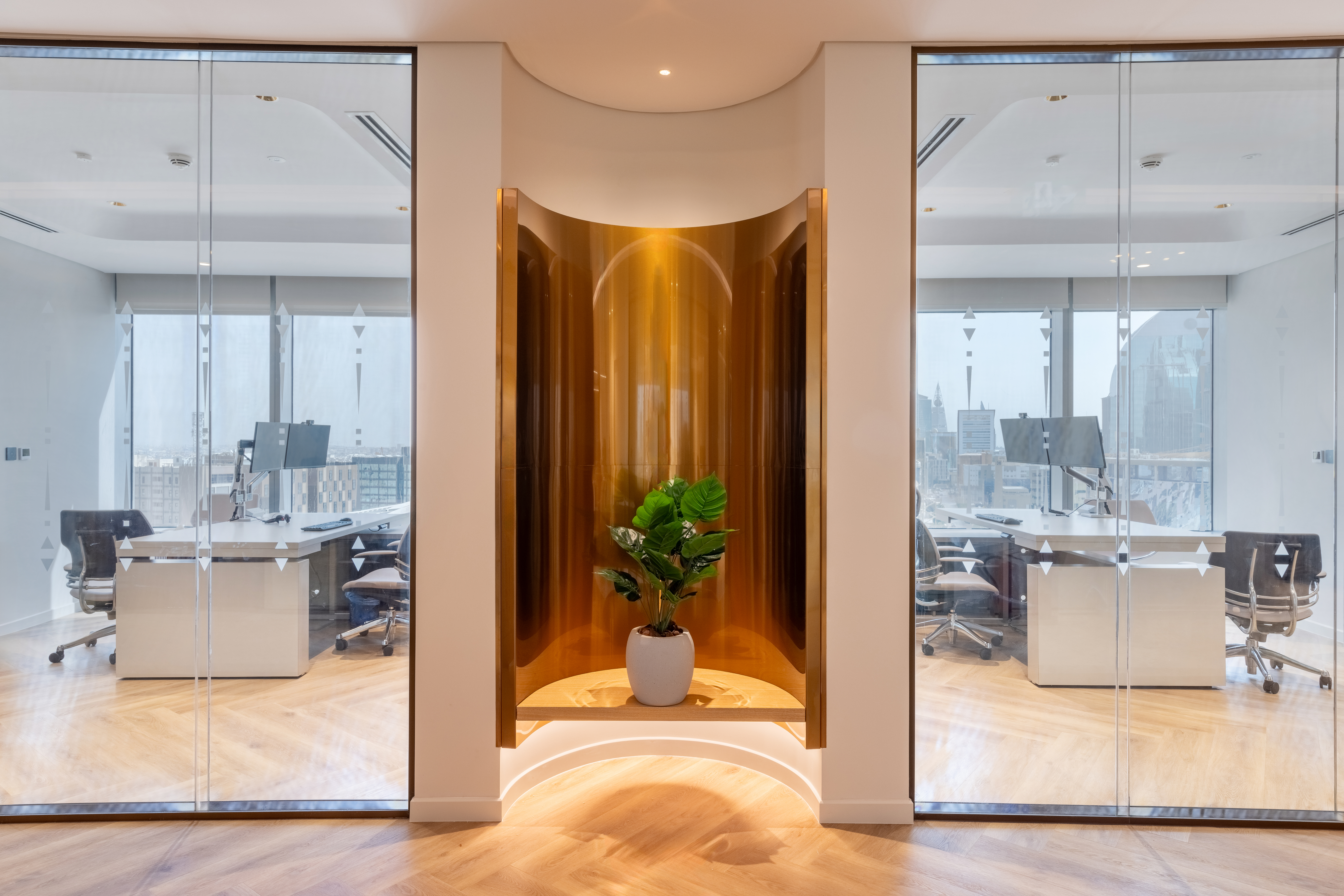 Hogan Lovells’ Riyadh office required high-performance partitions that delivered both acoustic privacy and transparency, while integrating subtle references to Saudi heritage.